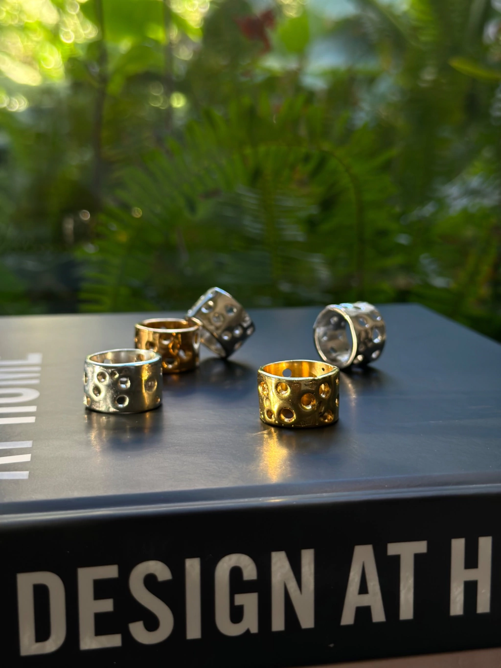 Anillo de bronce bañado en plata o bronce bañado en oro.
